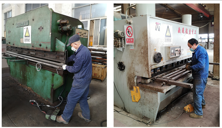 圖為輕鋼龍骨公司二車間、三車間工人師傅加班加點加工爬架所需材料