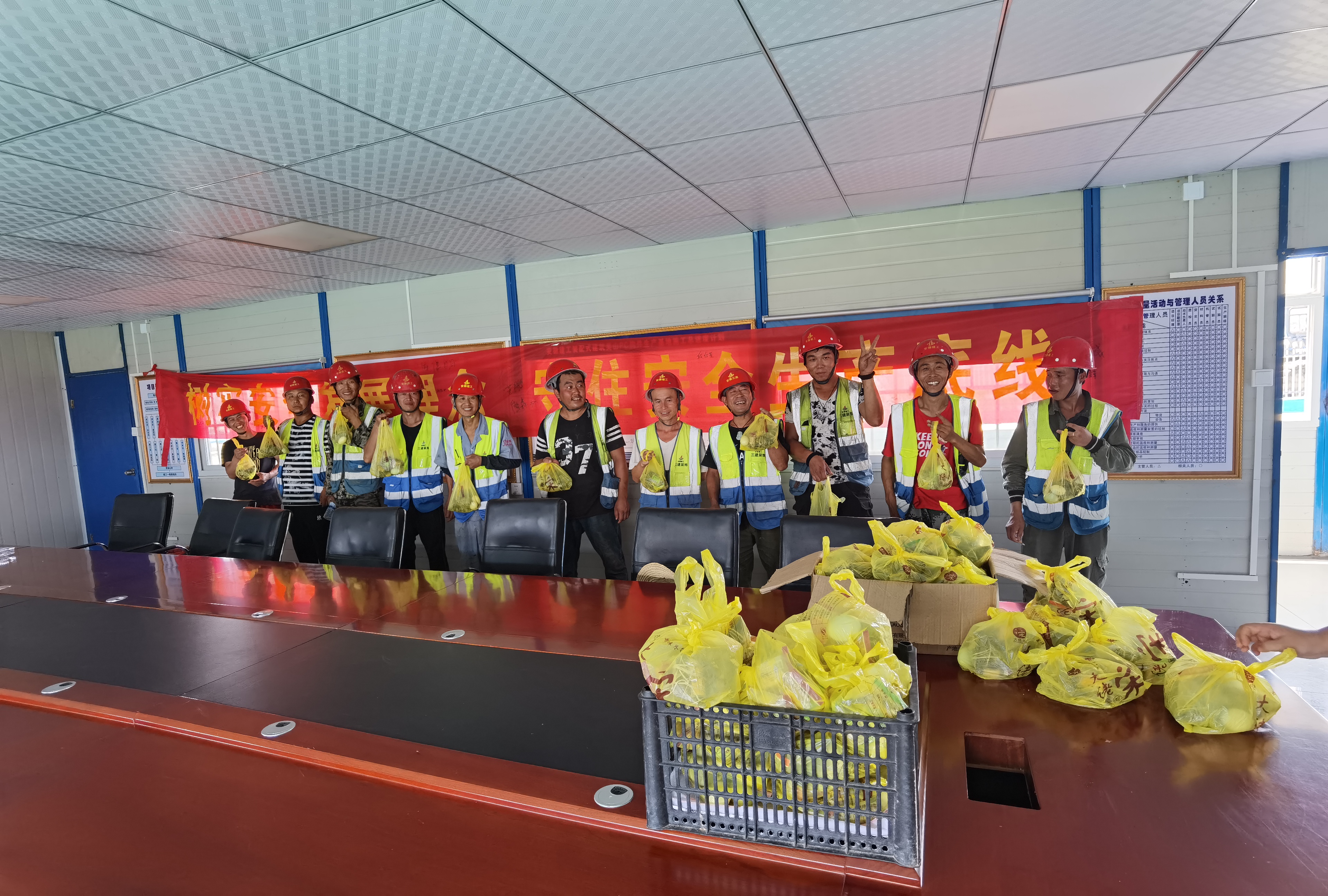 圖為吳山PC構(gòu)件廠項目部管理人員為工人發(fā)放節(jié)日禮品