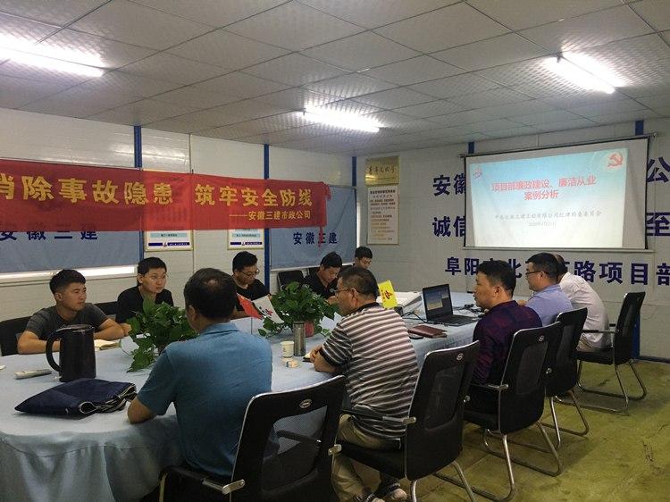 會上市政公司黨支部書記王其水、副經理、紀檢委員王永樹還與項目人員進行集體廉政談話,要求廣大黨員同志要充分發揮黨員安全監督崗作用和先鋒模范作用,筑牢安全風險和廉潔風險防線,營造項目風清氣正,干事創業的好氛圍。