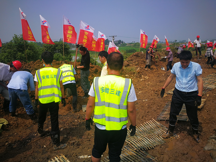 7月19日、20日,六公司經(jīng)理陳潤(rùn)坤等先后帶組織50余人參與到公司組織防洪搶險(xiǎn)救援隊(duì)前往廬江縣白山開展抗洪搶險(xiǎn)工作。六公司軌道交通項(xiàng)目還與中鐵七局軌道交通組織人員參與合肥市軌道公司組建的城市防洪應(yīng)急機(jī)動(dòng)隊(duì),勇?lián)鐣?huì)責(zé)任,參與屬地防洪救援工作。