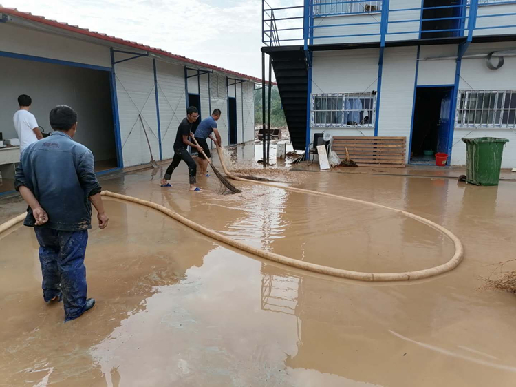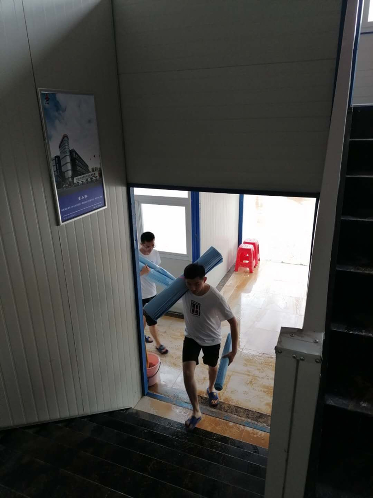 18日下午,四公司領導班子冒雨前往六安項目部,現(xiàn)場指導項目辦公區(qū)排水等抗洪自救工作。在當?shù)卣嘘P部門的協(xié)助下,項目部迅速開展排水自救,積水在2個小時后逐漸退去。19日下午,雨水完全退去,天氣逐漸轉好,項目全體管理人員奔赴現(xiàn)場清理辦公區(qū),雖然已經(jīng)疲憊不堪,但大家依然認真清掃項目部,當天便恢復項目辦公環(huán)境,為下一步恢復生產(chǎn)奠定了基礎。