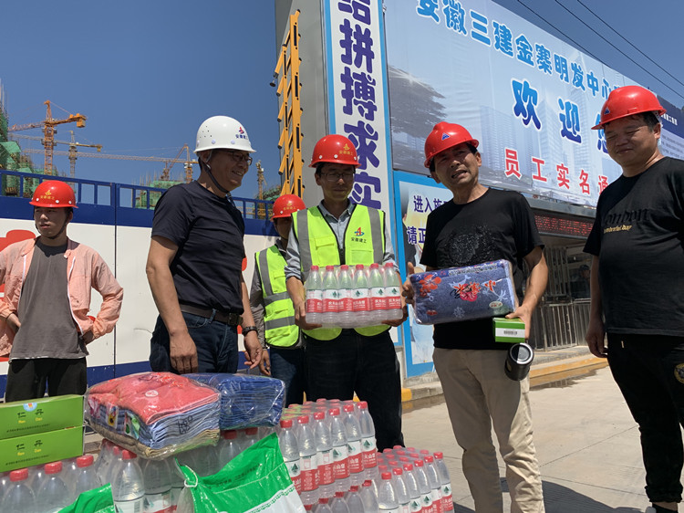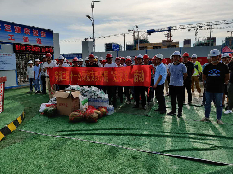 8月4日上午,支部副書記董專政及分公司領導班子成員趕往金寨明發超高層項目,慰問項目職工,并為項目職工送去提前準備好的礦泉水、綠豆、毛巾等物品。董專政指出,高溫天氣,項目部一定要做好安全施工,嚴格按照高溫作業要求落實防暑降溫工作,把職工安全健康放在第一位。