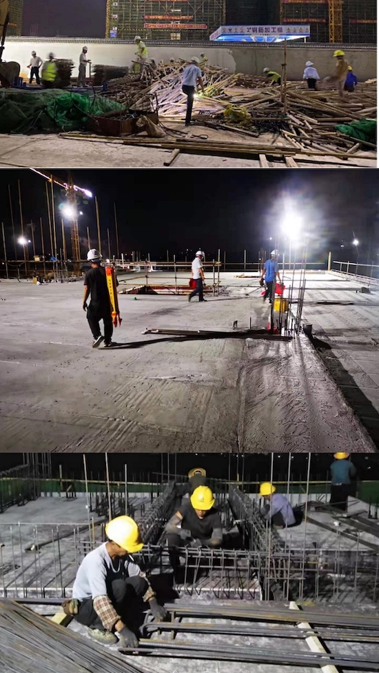 每年的9月、10月份,南方是臺風、多雨的天氣環境,項目以小雨正常干!大雨不停干!晴天拼命干!夜間挑燈干的精神努力克服不利環境因素對工期造成的影響。搶工期間項目部管理人員均身兼數職,主動放棄國慶及所有休息日,加班加點,堅守崗位,發揚白加黑的實干苦干精神,切實向甲方展現了“特別能吃苦、特別能戰斗”的企業作風。