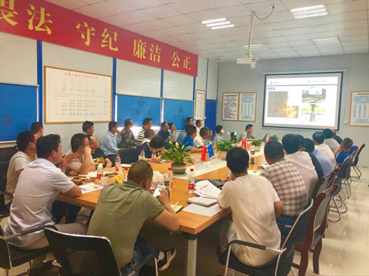 本次觀摩會旨在以該項目的安全生產工作為標準,推動全縣2018年“安全生產月”和“安全生產潁淮行”活動的高質量展開。 項目執行經理朱瑞華詳細介紹了三建公司人員安全教育、機械設備安全管理、揚塵治理設施、四節一環保落實、樣板引路等項目標準化管理的具體做法,充分展示了項目部對于安全文明施工、質量管控的高標準、嚴要求。觀摩人員參觀了項目現場安全文明創建、施工質量管控等實施情況,其中,各類場地的合理規劃利用,機械設備的智能化管理,安全虛擬體驗等措施令觀摩人員耳目一新。觀摩過程中大家交流經驗、互相學習,觀摩活動取得了良好效果。