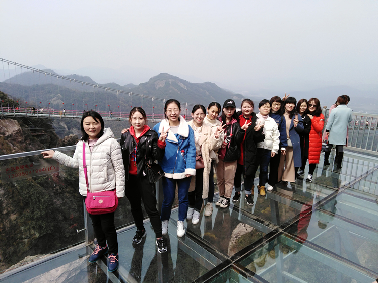 五公司工會組織全體女職工開展主題為“與青春為伴,攜幸福同行”的團建活動。14名女職工乘坐大巴前往蕪湖馬仁齊峰開展競速攀登頂峰、勇穿玻璃棧道、歡樂才藝表演等活動。活動中,女職工你追我趕,相互鼓勵、協作,歡聲笑語回蕩在山間。