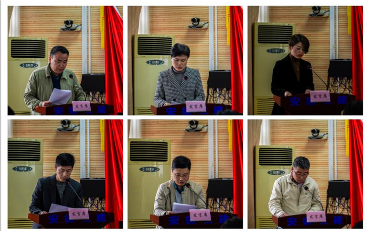 圖為市場經營部等六個部門負責人進行現場述職