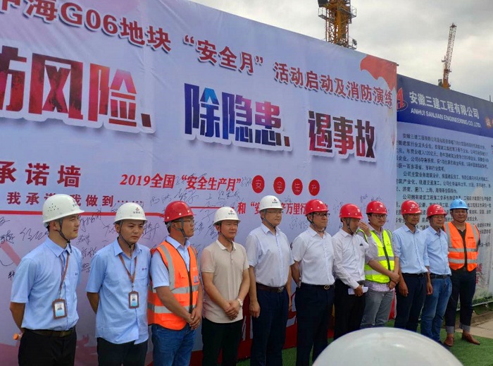 繼第一批公司8個單位舉行“安全月”啟動儀式后,近期,設(shè)備租賃公司、輕鋼龍骨公司、裝飾公司、上海公司等也積極啟動“安全月”活動,將“安全月”活動推向深入。6月6日上午,七公司2019年“安全生產(chǎn)月”活動啟動儀式在南京中海項目舉行,儀式上進行了安全宣誓并現(xiàn)場開展消防演練。中海地產(chǎn)副總經(jīng)理鮑壯志、項目總監(jiān)高偉受邀出席了儀式。公司副總經(jīng)理李建成參加了活動并講話。