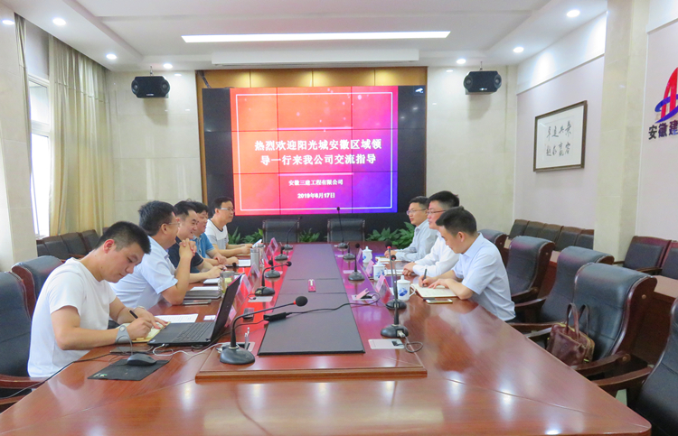 2019年6月17日,陽光城地產安徽區域總經理蔣必強一行3人來我司調研考察。公司黨委書記、董事長左登宏、黨委副書記、總經理何洪春、副總經理劉順利接待考察,公司大客戶事業部負責人及相關人員參加了調研座談。