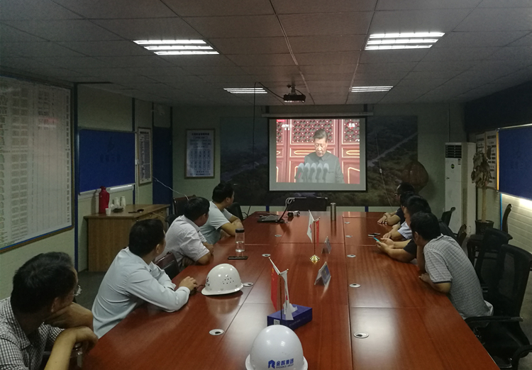 圖為八公司臨泉聯合黨支部組織項目全體管理人員觀看直播