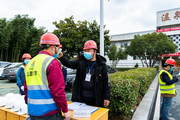 公司重點抓人員管理和防疫措施落實,要求管理人員和勞務人員來源必須全覆蓋排查,對所有進場人員建檔登記;在防疫物資上,要求項目部必須配備體溫檢測設備、口罩、消毒液等疫情防控物資,確保復工時疫情防控物資的供應。項目一律實行封閉式管理,安排專人對所有人員每日進行體溫檢測并發放口罩,錯峰安排管理人員及工人就餐;加強現場消毒和場地管理,積極宣貫防疫知識,保障項目環境衛生安全。