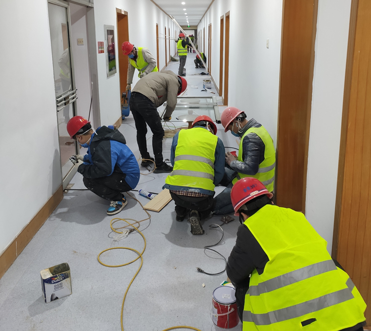 領導帶頭,組織有力。當晚項目班子組成,連夜開始組織人員。2月2日上午20余名管理人員到位,40多名工人陸續到來。萬和生,彭純杰和安建設計院有關人員一起連夜加班調閱圖紙、梳理工作任務清單,開展前期工作。
