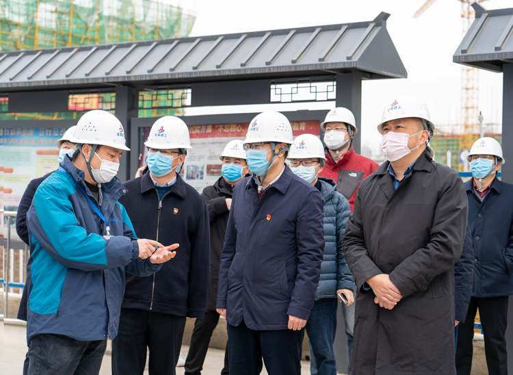 2月27日上午,包河區區委書記葛銳率隊到葛大店幸福城A區項目一線調研疫情防控及復工復產工作,安徽三建公司紀委書記、工會主席李家保、三分公司經理、項目經理等參加調研。