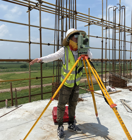 在皖北,八公司臨泉十中項目現場,管理人員與一線職工齊上場,搶抓施工進度,確保部分樓棟年底完成竣工驗收節點任務,圖為管理人員正在測量數據