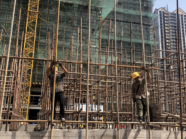 8月份以來,皖北連天35°以上高溫天氣,亳州時代樾府項目正值上結構階段,架業公司要求外架搭設班組嚴格遵守上級主管部門和項目部要求,錯峰上班、合理安排工作,既要搶抓工期,也要遵守安全搭設紀律,確保高溫期間施工安全。圖為工人師傅在搭設防護架。