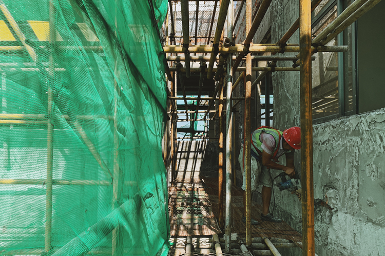 在高溫天氣下,裝飾公司合肥工業學校財經樓項目施工工人師傅依然堅守崗位,進行拆除掃尾工作,確保在學生返校前結束所有拆除工作,保證學生的學習環境。