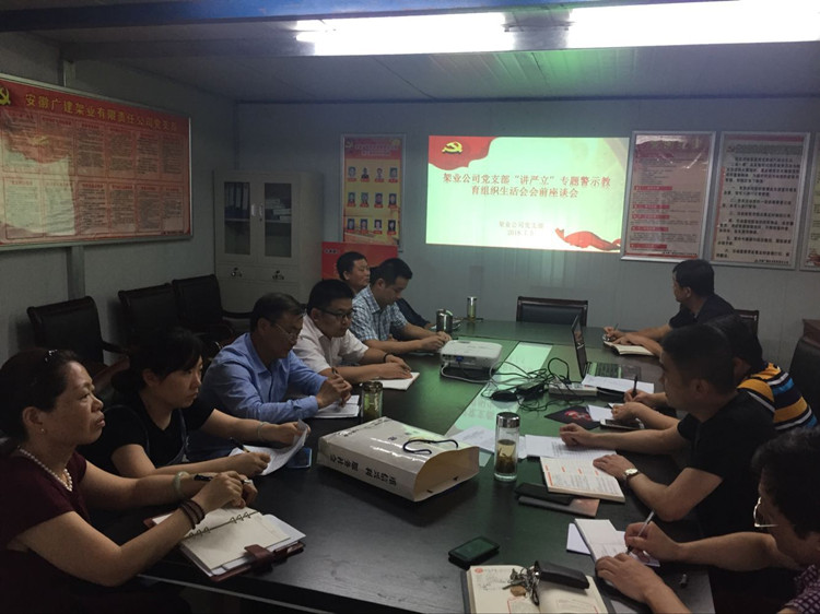 2018年7月5日,架業公司黨支部率先召開“講嚴立”專題警示教育組織生活會會前征求意見座談會,全體黨員參加了會議。會議由黨支部副書記張賢軍主持。