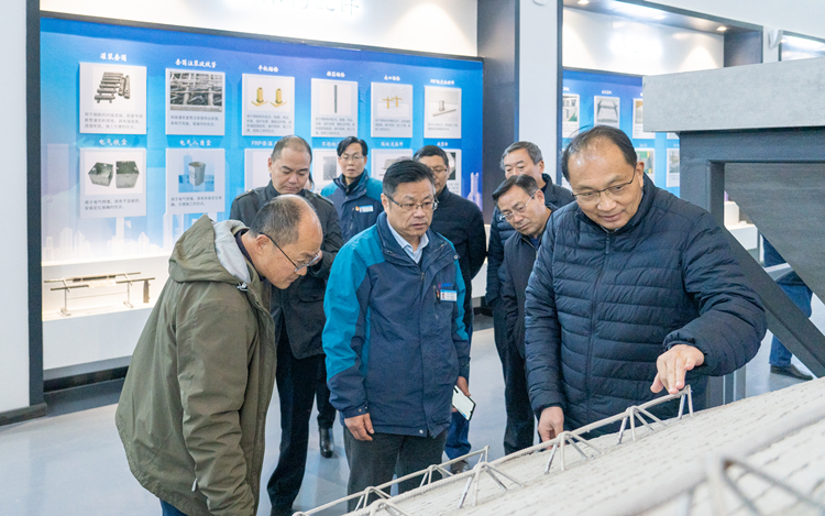 何向陽一行參觀了建筑工業(yè)公司生產(chǎn)車間,詳細了解了裝配式建筑固定模臺生產(chǎn)線、部品部件、軌道交通管片生產(chǎn)流程。在建筑工業(yè)公司綠色建造展廳,何向陽一行通過公司自行研發(fā)的Smart-PC智能化工廠大數(shù)據(jù)電子大屏,查看了企業(yè)部品構(gòu)件生產(chǎn)動態(tài)、精準排產(chǎn)、堆場可視以及設(shè)備安全監(jiān)控、成本自動核算等功能后,對工業(yè)公司在發(fā)展裝配式建筑和智能建造技術(shù)方面取得的成果給予高度贊揚,并表示希望進一步加強政企合作,建設(shè)更為廣闊的合作平臺,實現(xiàn)互利共贏、共同發(fā)展。